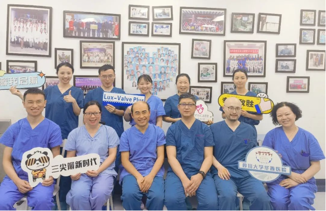 2022年5月27日,四川大學(xué)華西醫(yī)院心臟內(nèi)科陳茂、馮沅教授帶領(lǐng)的瓣膜病介入治療多學(xué)科團隊,在國內(nèi)首次采用純介入方式通過穿刺右側(cè)頸靜脈成功完成經(jīng)導(dǎo)管三尖瓣置換。植入的人工瓣膜是具有中國自主知識產(chǎn)權(quán)的LuX-Valve Plus系統(tǒng)。術(shù)中上海長海醫(yī)院陸方林教授和喬帆副教授給予了在線支持。