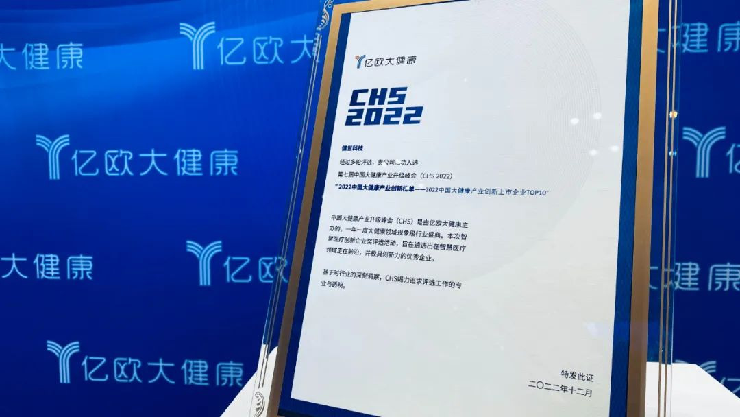 12月29日,寧波健世科技股份有限公司(”健世科技“)在第七屆中國大健康產(chǎn)業(yè)升級(jí)峰會(huì)(CHS2022)年度盛典獲評”2022中國大健康產(chǎn)業(yè)創(chuàng)新上市企業(yè)TOP10“。