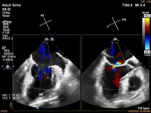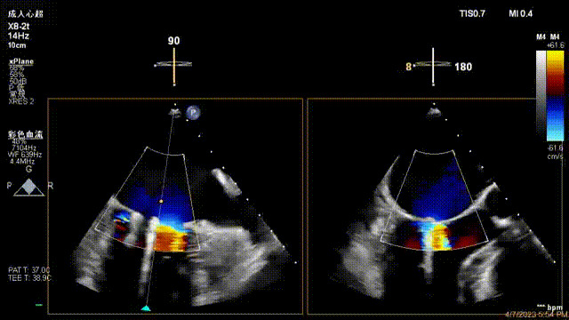 接受治療的是一例器質(zhì)性重度二尖瓣反流(DMR)患者,主訴“反復(fù)活動后胸悶,氣促3年余”。術(shù)前超聲顯示,雙房增大,二尖瓣脫垂伴重度反流,輕度三尖瓣反流,輕度肺高壓,升主動脈增寬。手術(shù)經(jīng)股靜脈-房間隔入路,采用全身麻醉插管,在TEE和DSA引導(dǎo)下完成房間隔穿刺。置入JensClip瓣膜夾系統(tǒng)后,在左房調(diào)整瓣膜夾的位置和軸向,后進(jìn)入左室,在TEE引導(dǎo)下捕捉二尖瓣前后瓣葉,并關(guān)閉瓣膜夾。經(jīng)TEE反復(fù)確認(rèn)手術(shù)效果后最終鎖定并釋放瓣膜夾。術(shù)后即刻超聲顯示瓣膜夾位置穩(wěn)定,功能良好,術(shù)前二尖瓣反流4+,術(shù)后0反流,肺靜脈逆流和左房壓都顯著好轉(zhuǎn),手術(shù)圓滿成功(以上數(shù)據(jù)都來源于醫(yī)院的臨床記錄)。術(shù)后患者狀態(tài)良好,目前已安排出院。