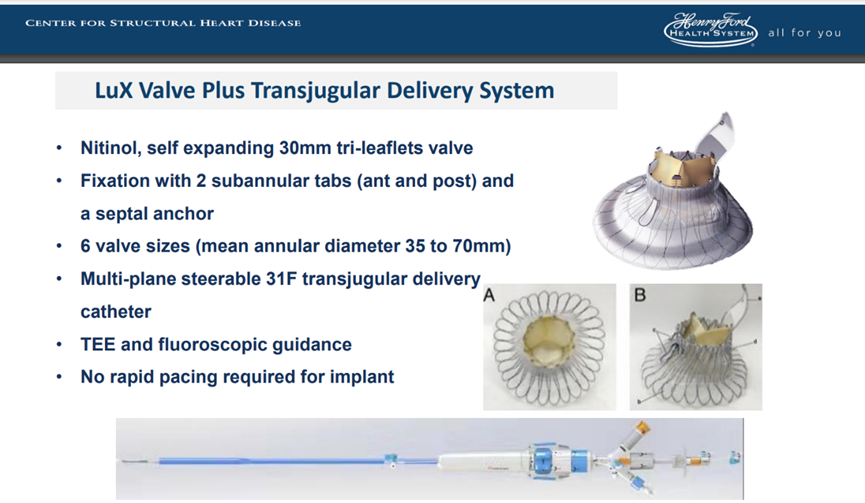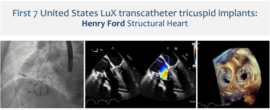 Dee Dee Wang教授隨后分享了Henry Ford Hospital前7例LuX-Valve Plus的植入經(jīng)驗(yàn),并提示術(shù)中確定瓣葉夾持鍵的位置處于三尖瓣瓣環(huán)下方(右心室側(cè)),以及室間隔固定片與室間隔的相對(duì)位置關(guān)系是最關(guān)鍵的兩個(gè)步驟。通過(guò)經(jīng)胃底短軸切面,配合右室流入/流出道切面的X-plane就能較容易地獲取相關(guān)影像。由于LuX-Valve Plus對(duì)超聲影像的要求較低,手術(shù)過(guò)程簡(jiǎn)單易操作。