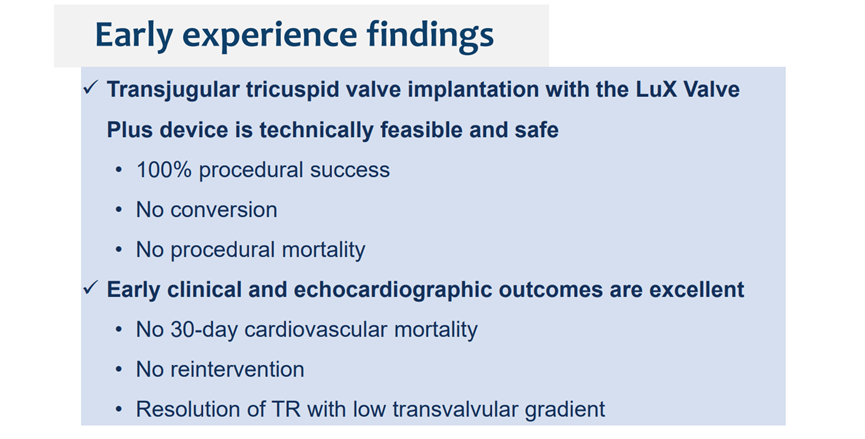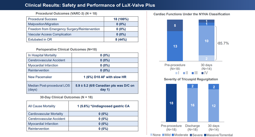 從研究結(jié)果可以看出,LuX-Valve Plus經(jīng)導(dǎo)管三尖瓣置換系統(tǒng)是安全、有效的,是三尖瓣介入治療領(lǐng)域的重要選擇之一。