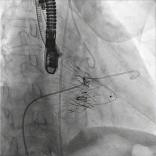 接受手術(shù)的為一名80歲男性,因“心悸2年,氣喘伴下肢水腫半年”入院。超聲心動(dòng)提示“極重度三尖瓣反流,右房及右室明顯擴(kuò)大,右心收縮功能輕度減低,左心收縮功能正常,肺動(dòng)脈壓力正常”。患者同時(shí)合并有“持續(xù)性房顫”及“慢性心力衰竭”,病史持續(xù)2年,規(guī)律口服抗凝及強(qiáng)心、利尿治療治療效果不佳,癥狀持續(xù)。經(jīng)廈心心臟團(tuán)隊(duì)評(píng)估后,認(rèn)為患者三尖瓣極重度反流并伴有心衰表現(xiàn),長(zhǎng)期內(nèi)科藥物治療效果不佳,且患者高齡、外科手術(shù)風(fēng)險(xiǎn)高,因此決定采用微創(chuàng)經(jīng)頸靜脈LuX-Valve Plus三尖瓣置換系統(tǒng)為患者治療。