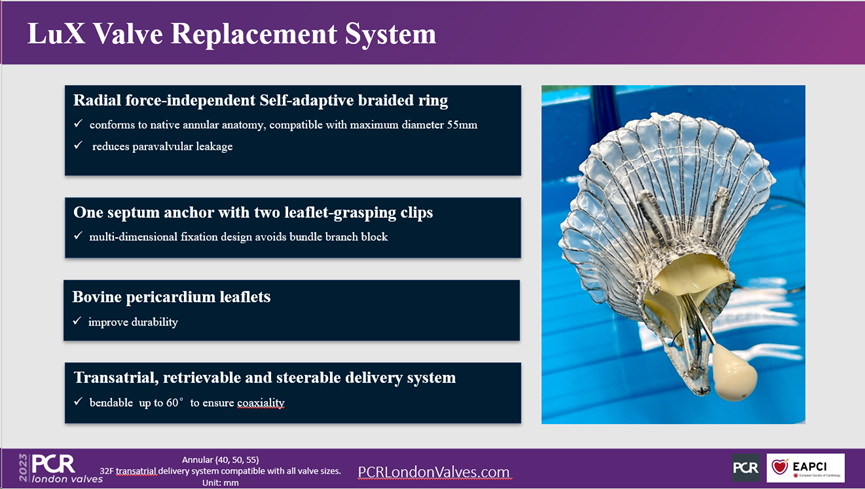 PCR London Valves是心臟瓣膜病介入治療領域全球范圍內(nèi)水平最高的學術盛會,此次會議吸引了來自全球數(shù)十個國家、地區(qū)的上千名相關領域的專家、學者及醫(yī)生參會。在本次會議上,三尖瓣風險評估系統(tǒng)TRI-SCORE的提出者、來自法國巴黎圣丹尼斯醫(yī)院的Julien Dreyfus教授受中國醫(yī)學科學院阜外醫(yī)院潘湘斌教授委托重磅公布了LuX-Valve經(jīng)導管三尖瓣置換系統(tǒng)確證性臨床試驗一年期結(jié)果。亮眼的臨床數(shù)據(jù)展現(xiàn)出了產(chǎn)品獨創(chuàng)的設計優(yōu)勢及優(yōu)異性能。