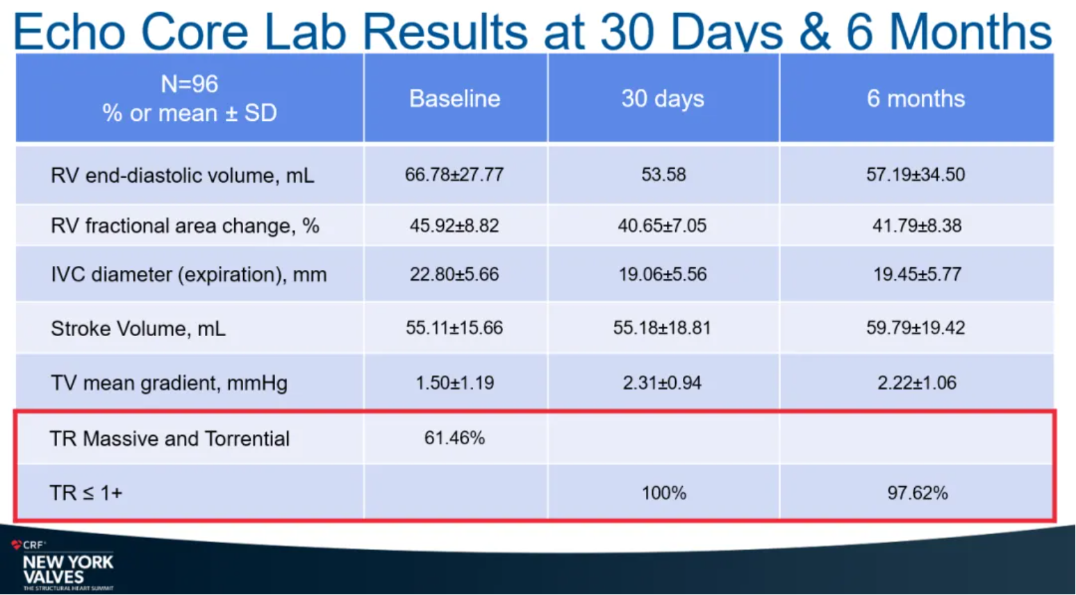 有效性結(jié)果顯示,患者的反流等級(jí)、心功能等級(jí),以及生活質(zhì)量顯著改善。100%的患者在30天顯示無(wú)中度及以上反流,97.62%的患者在6個(gè)月時(shí)顯示無(wú)中度及以上反流。同時(shí),根據(jù)超聲數(shù)據(jù)顯示,患者右心系統(tǒng)重構(gòu)也獲得受益。