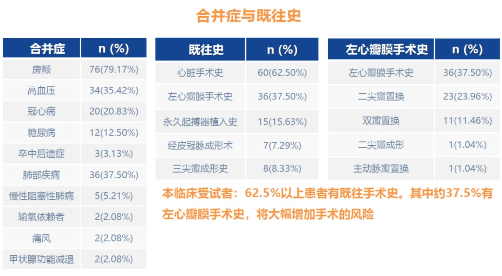 TRAVEL II 研究是一項前瞻性、多中心、單臂臨床試驗,主要用于評估LuX-Valve Plus于重度三尖瓣反流患者中應(yīng)用的長期安全性和有效性。TRAVEL II 臨床試驗共納入了中國15家臨床中心的96例患者。患者平均年齡為71.35歲,平均STS評分為9.09%,37.50%的患者在研究前接受了左心瓣膜手術(shù),15.63%的患者有過起搏器植入史,同時多合并其他基礎(chǔ)病,基線情況較差,存在較高的外科手術(shù)風(fēng)險和接受其他方式介入治療的難度。