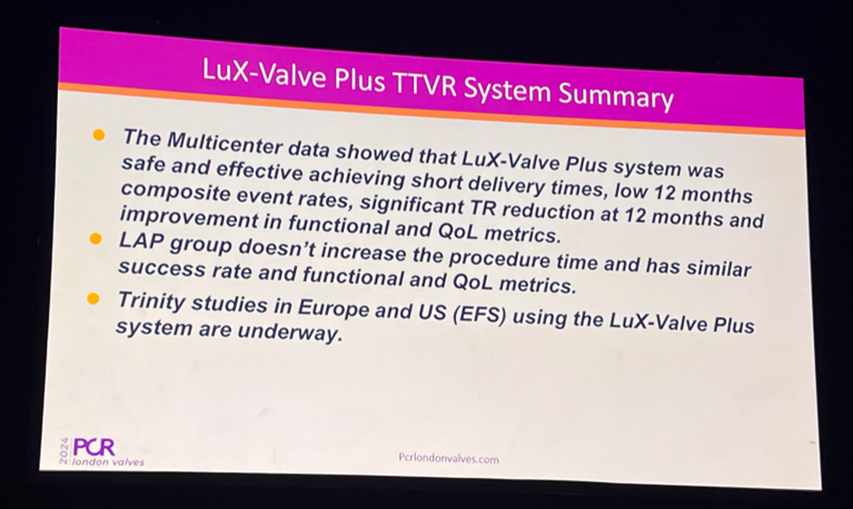 在2024年11月24-26日舉行的 PCR London Valves 2024 大會(huì)上,LuX-Valve Plus 再次成為關(guān)注焦點(diǎn)。從來(lái)自中國(guó)的大尺寸瓣環(huán)患者1年臨床數(shù)據(jù)到來(lái)自歐洲、香港和巴西的手術(shù)植入經(jīng)驗(yàn)全面立體的呈現(xiàn)了其如何為三尖瓣治療提供全新的機(jī)遇及未來(lái)前景。